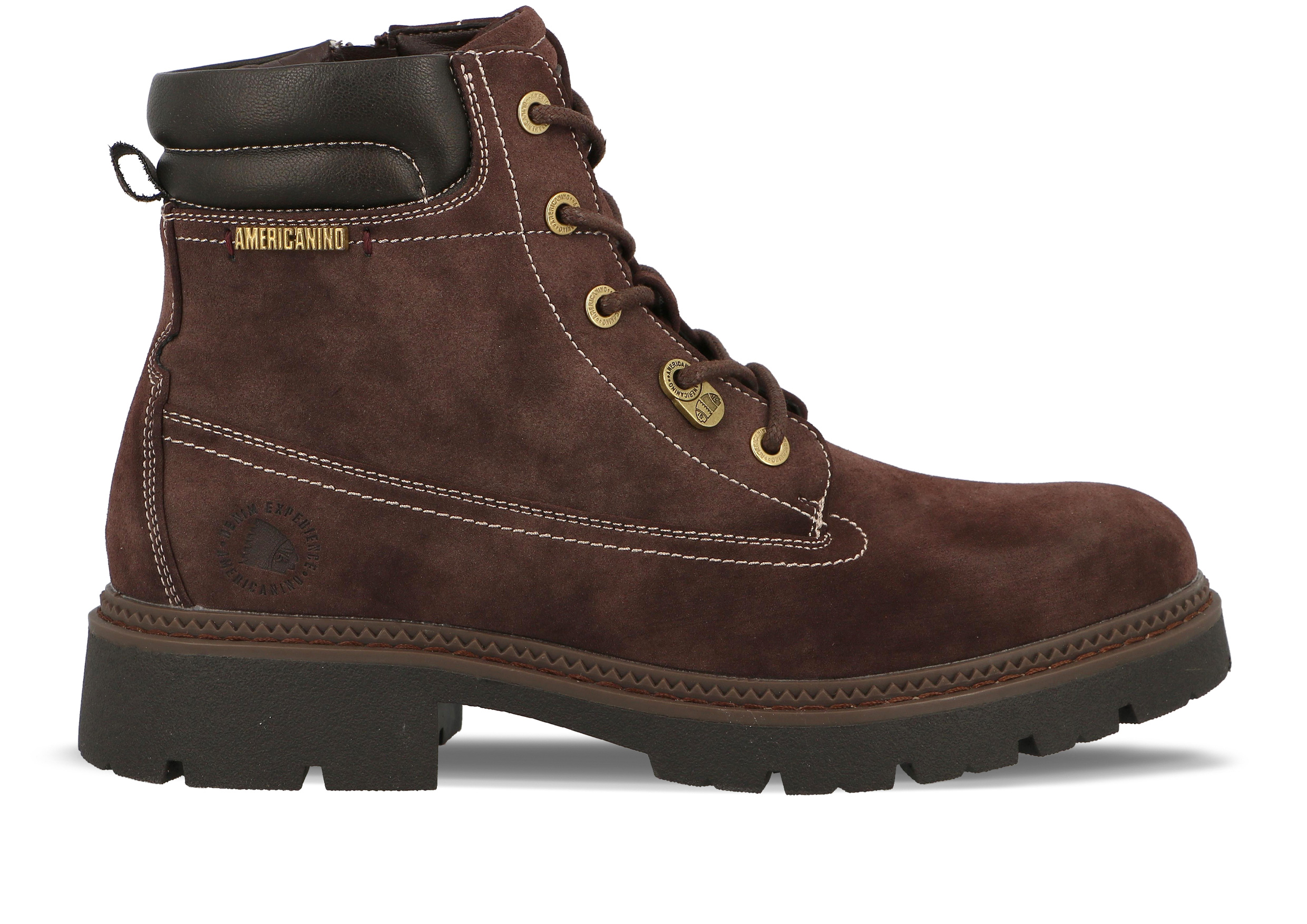 Robustezza outdoor e carattere urbano si incontrano nello stivale Americanino CANYON, pensato per chi ama uno stile deciso e funzionale. Realizzato in nubuck sintetico marrone Root, questo boot unisce dettagli trekking e un design iconico che non passa inosservato.