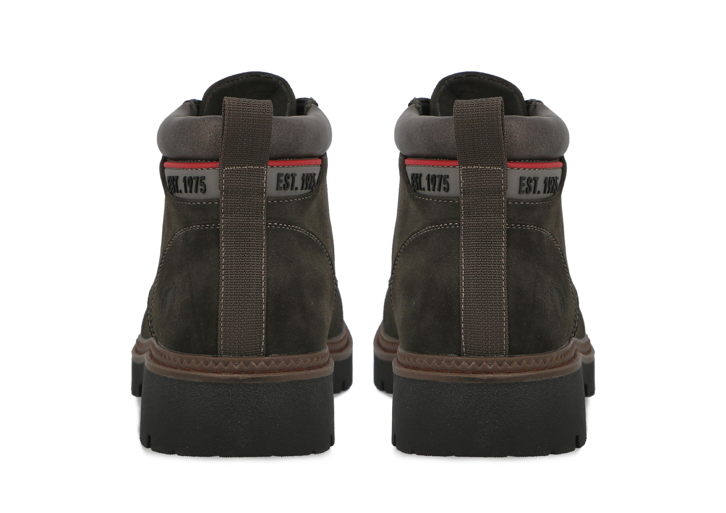 The padded eco-leather collar ensures comfort and ankle support, while the side “EST. 1975” patch pays tribute to Americanino’s heritage. Its sturdy black rubber lug sole offers stability, durability, and excellent grip, ideal for both city life and outdoor adventures.