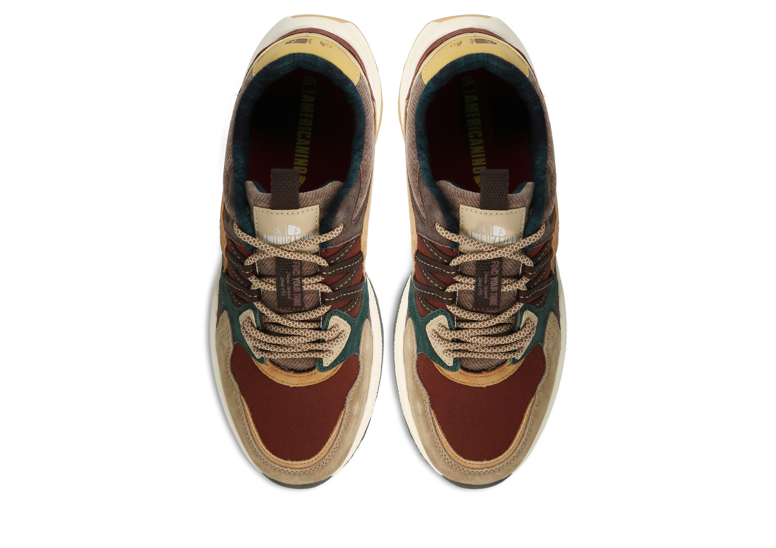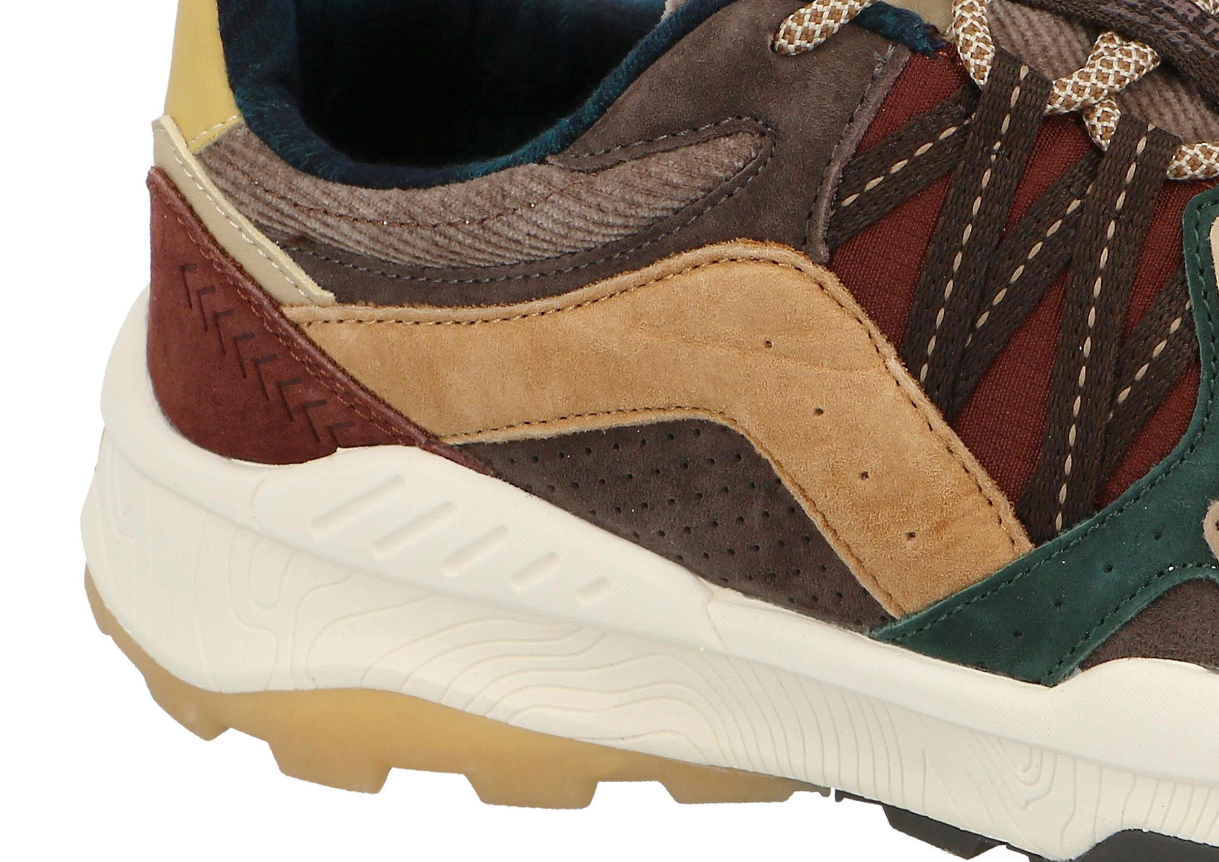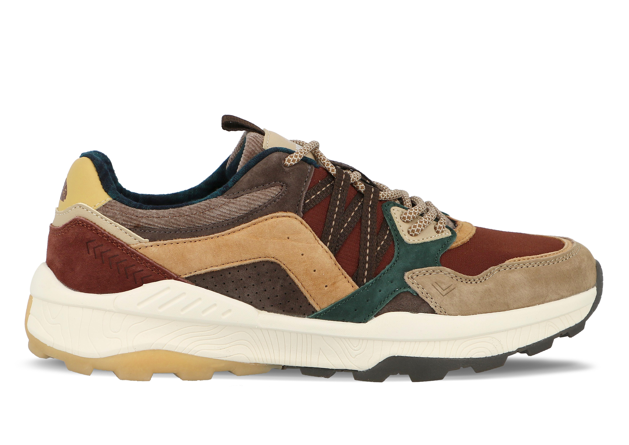 Outdoor inspiration meets urban style in the Americanino KLAY Ebony, a sneaker with a bold and contemporary spirit. Crafted from multicolor suede and technical fabric, it features a warm mix of brown, leather, and burgundy shades, enhanced by contrasting green details and two-tone laces that highlight its dynamic character.