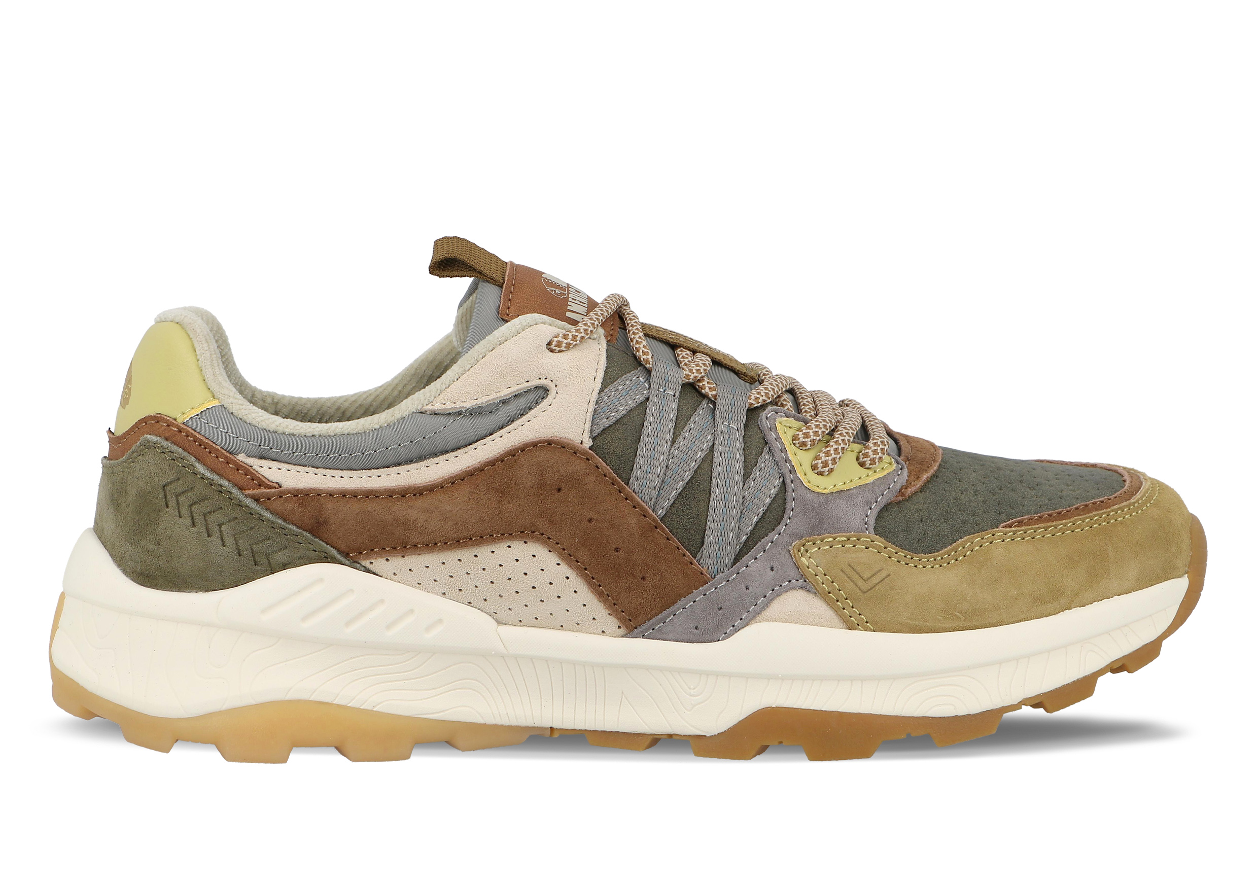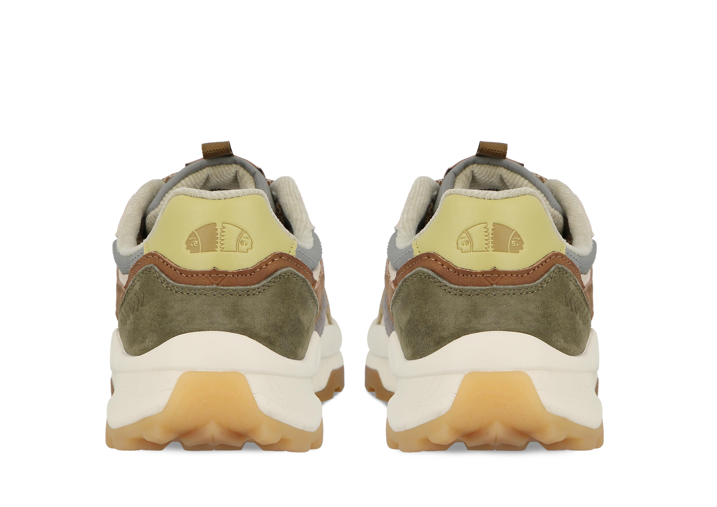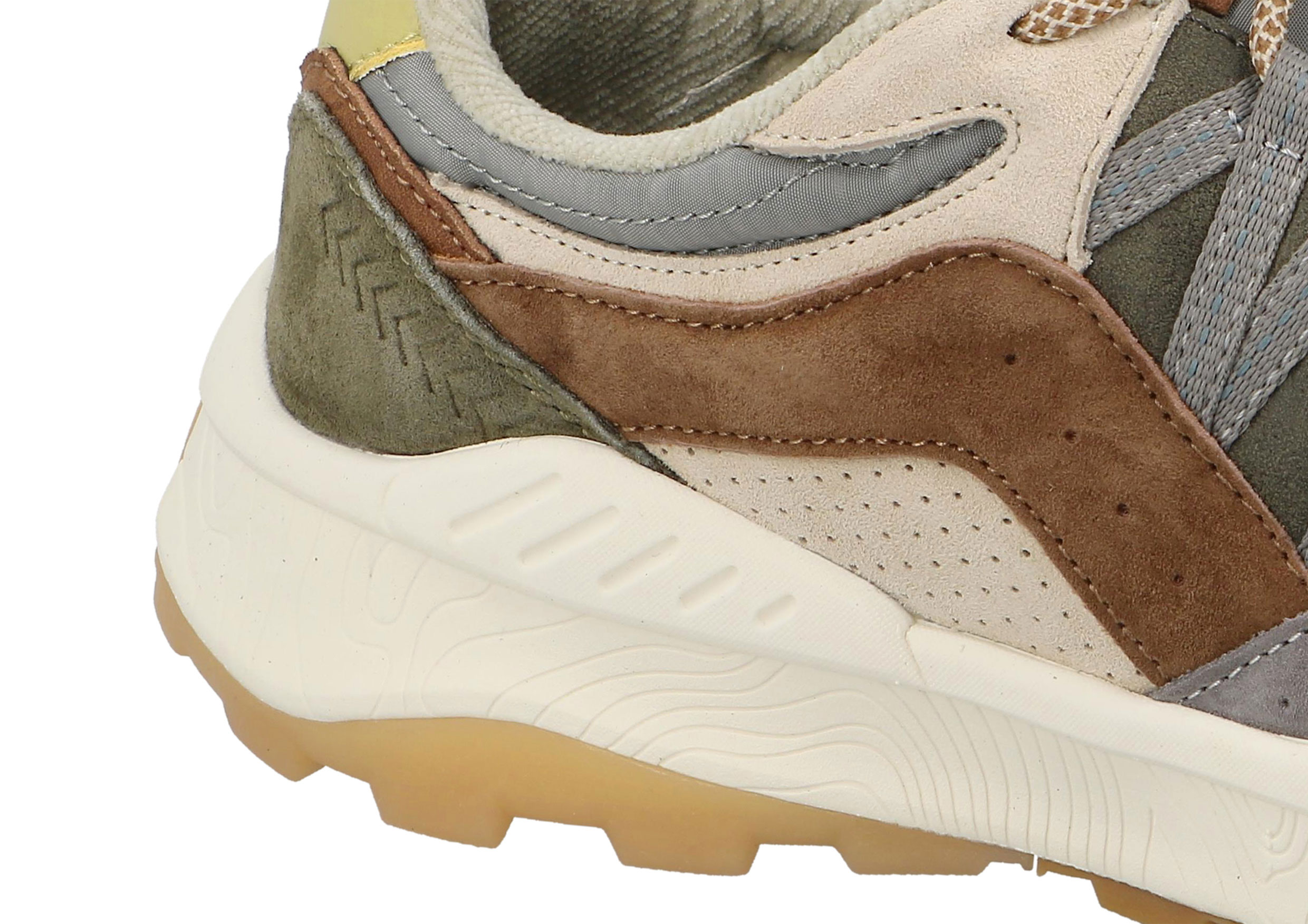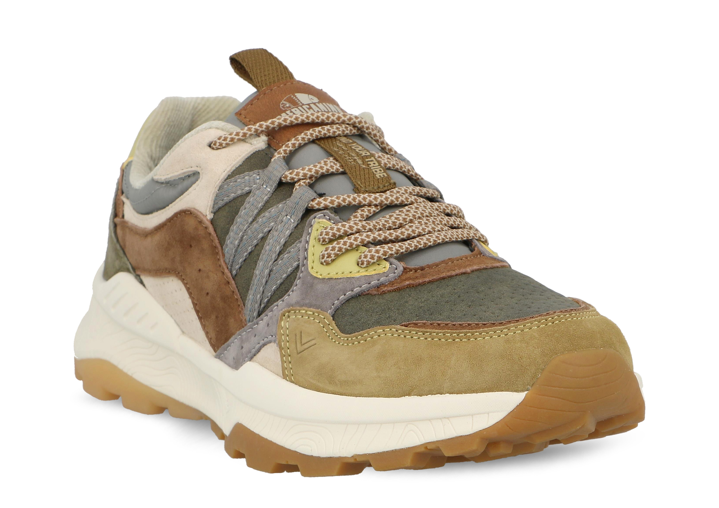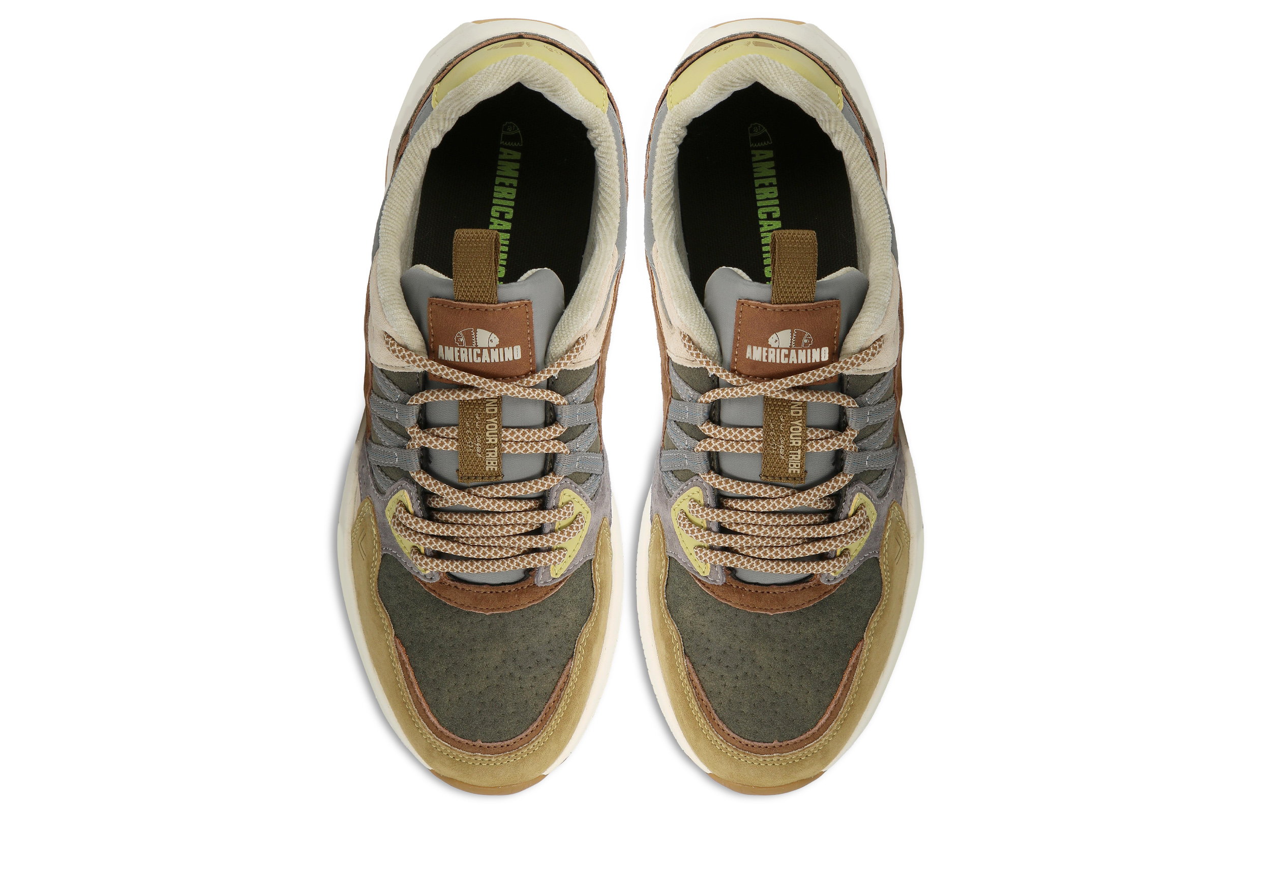 Outdoor spirit meets modern design with the Americanino KLAY NBK Yeti, a sneaker that combines premium materials and refined details for a bold and versatile look. Crafted from suede and technical fabric, it blends natural tones of beige, brown, olive green, and grey with light yellow accents, creating a distinctive and contemporary color palette.